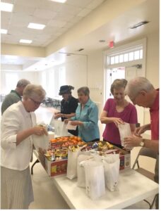 Members of Clemmons Moravian Church identified the Winston-Salem Rescue Mission’s daily bagged lunch program as a mission to support. So, following worship on Sept. 15th, approximately 50 volunteers prepared lunches including peanut butter and jelly sandwiches, chips, granola bars, fruit and bottled water. The food was provided by the church’s Womens’ Fellowship Circle 3. Explained Clemmons’ members, “This outreach was a good reminder of how we are called to provide for those in need.” Those participating are considering continuing this as an ongoing outreach project.