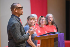 The sanctuary became the plenary hall, while the classrooms throughout College Hill served as meeting rooms. The university’s staff moved food service to the fellowship hall. And while the large group was a little cramped and the air conditioning system struggled to keep up, the move to College Hill went off without a hitch.